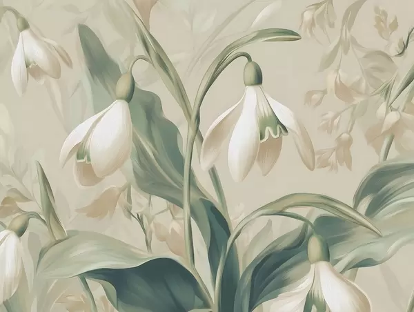 Murais de parede flores de neve desabrochando sobre um fundo bege Nr. w05234