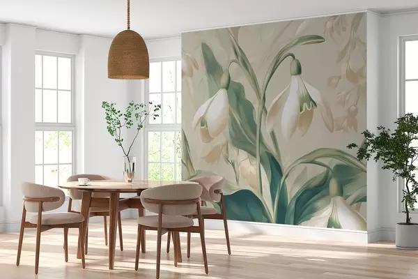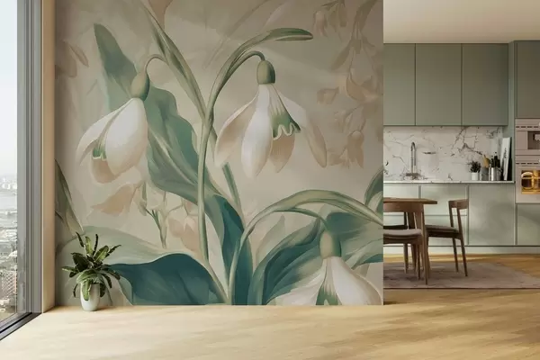 Murais de parede flores de neve desabrochando sobre um fundo bege Nr. w05234