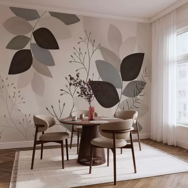Murais de parede folhas e gramíneas em tons de bege, cinza e marrom Nr. w05237