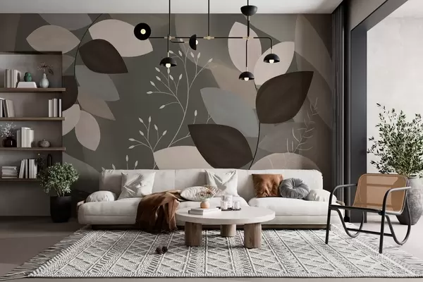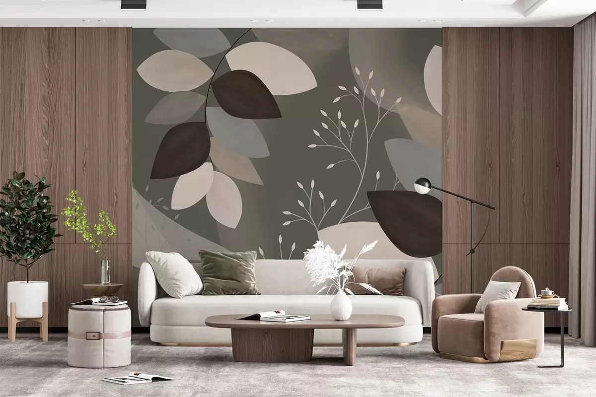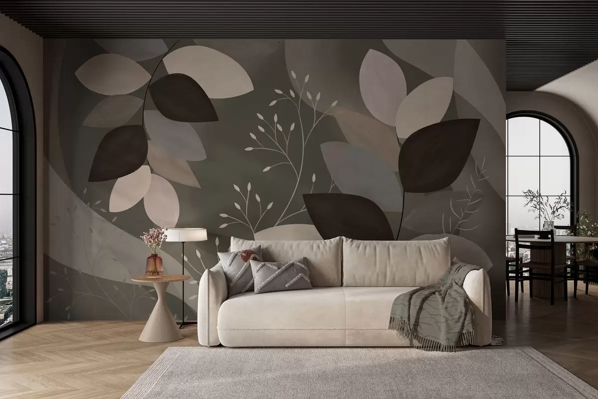 Murais de parede folhas e gramíneas em tons escuros Nr. w05237v1