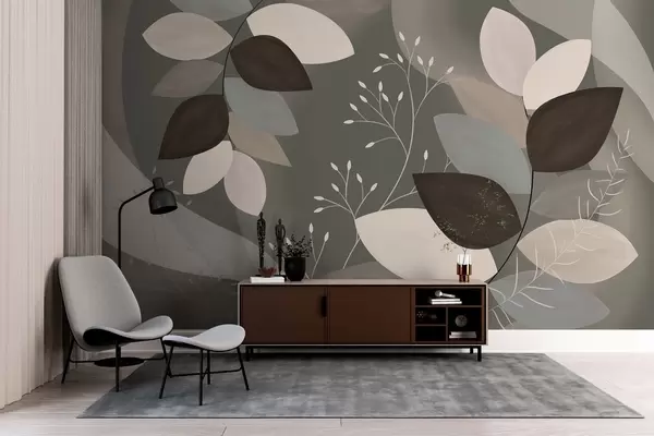 Murais de parede folhas e gramíneas em tons escuros Nr. w05237v1