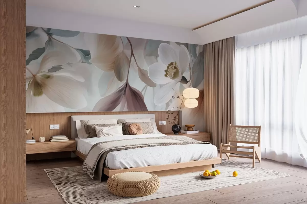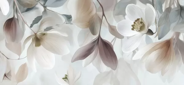 Murais de parede uma delicada composição de flores e folhas em tons pastéis Nr. w05240