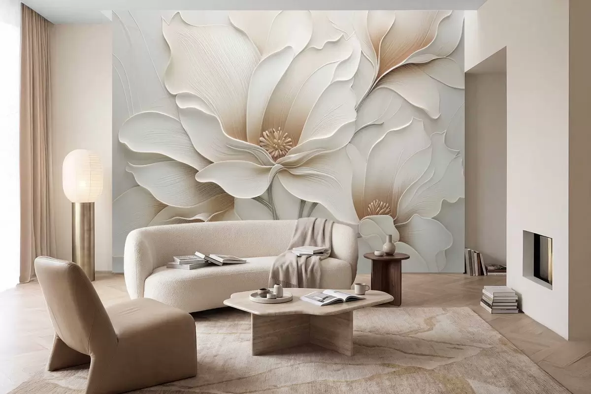 Murais de parede Close-up de relevo de flor bege em relevo Nr. w05269