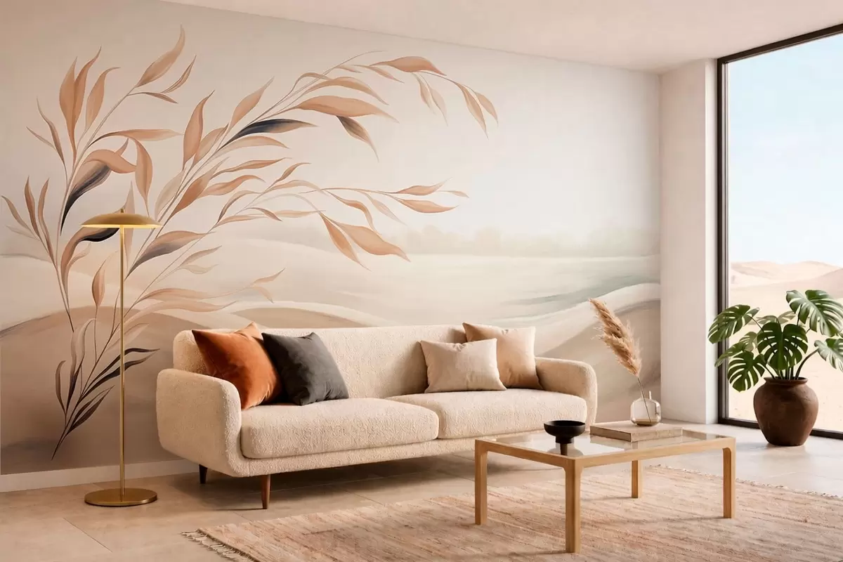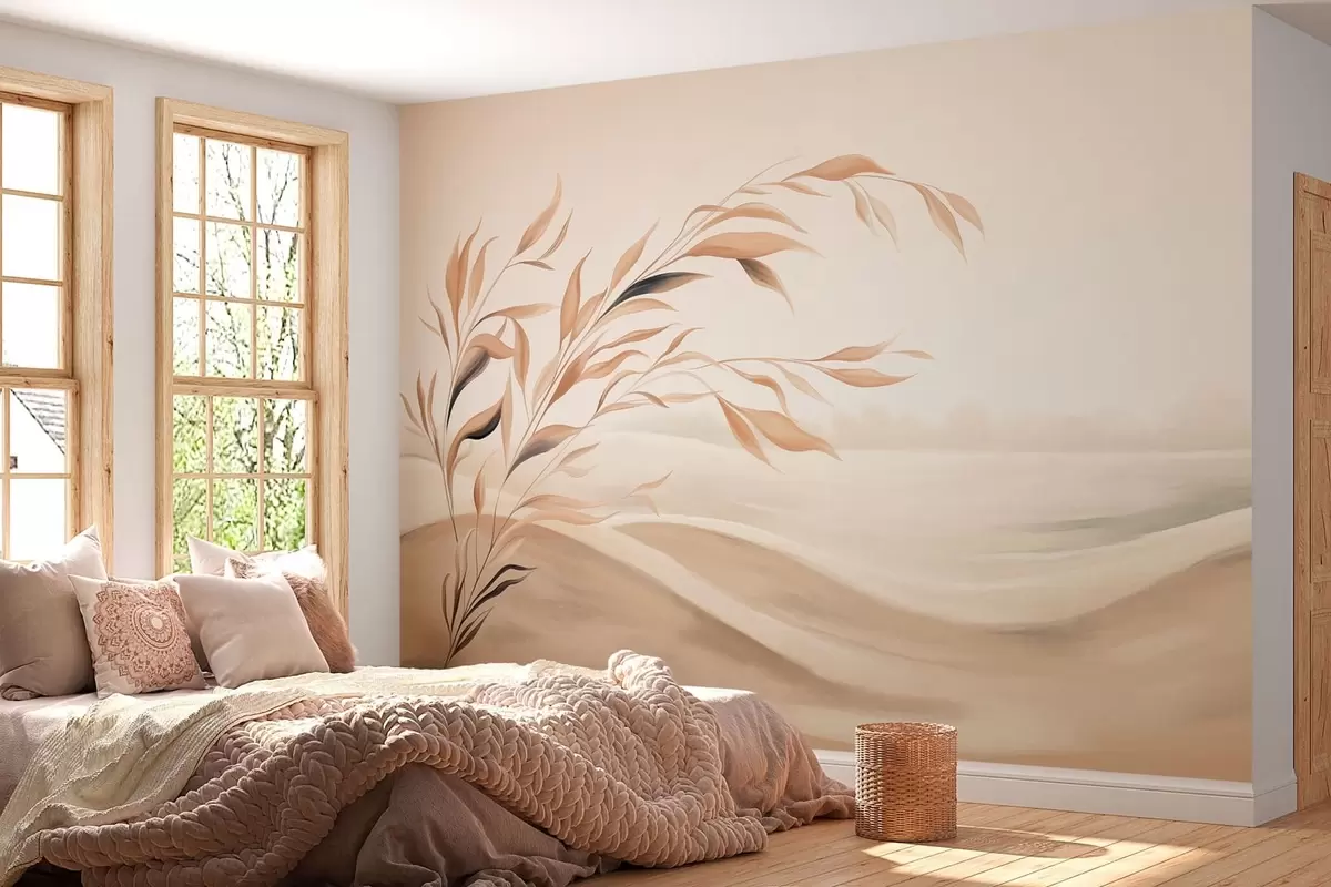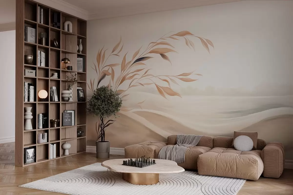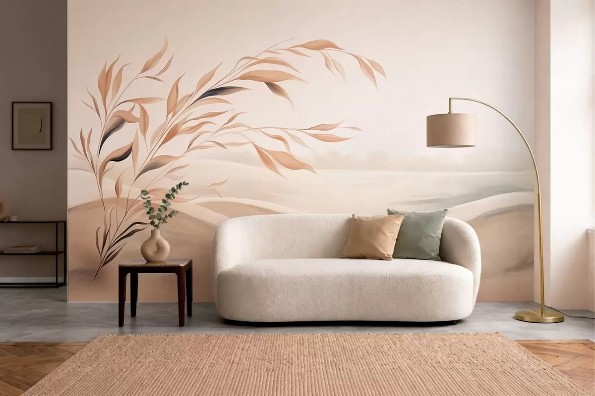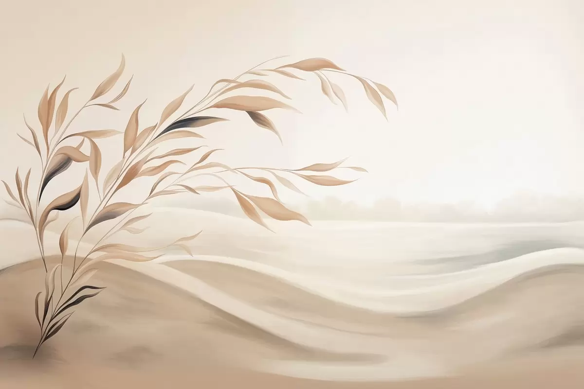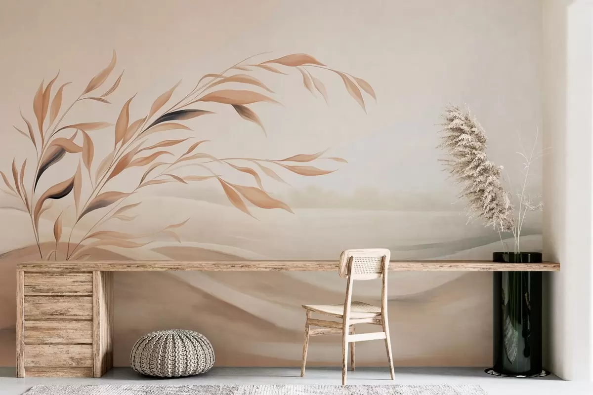 Murais de parede Uma paisagem suave com um galho sobre colinas em tons de bege claro Nr. w05297