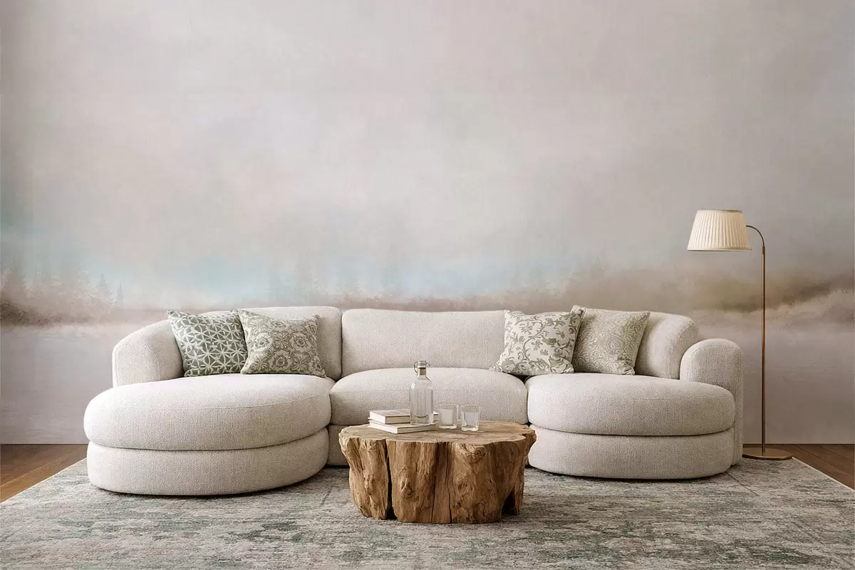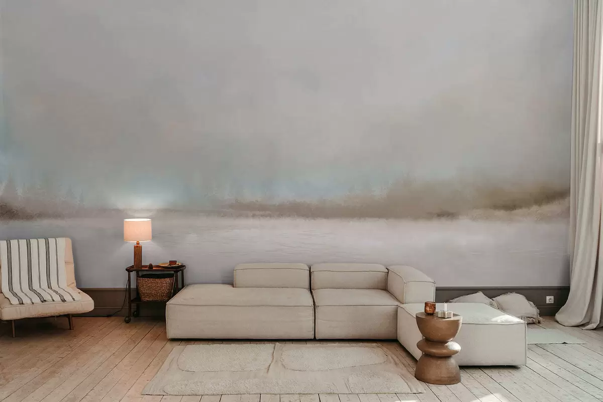 Murais de parede Paisagem enevoada com lago e floresta Nr. w05319