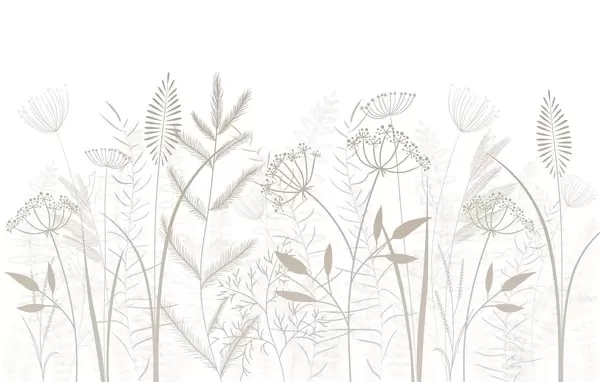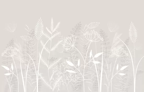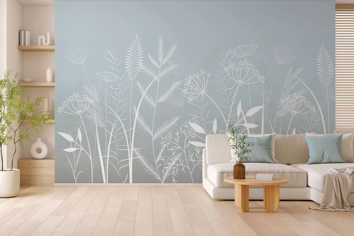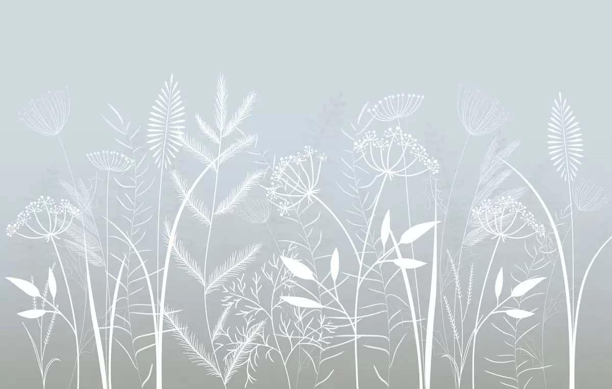 Murais de parede delicadas ervas silvestres e flores pintadas à mão sobre um fundo cinza-azulado Nr. w05383