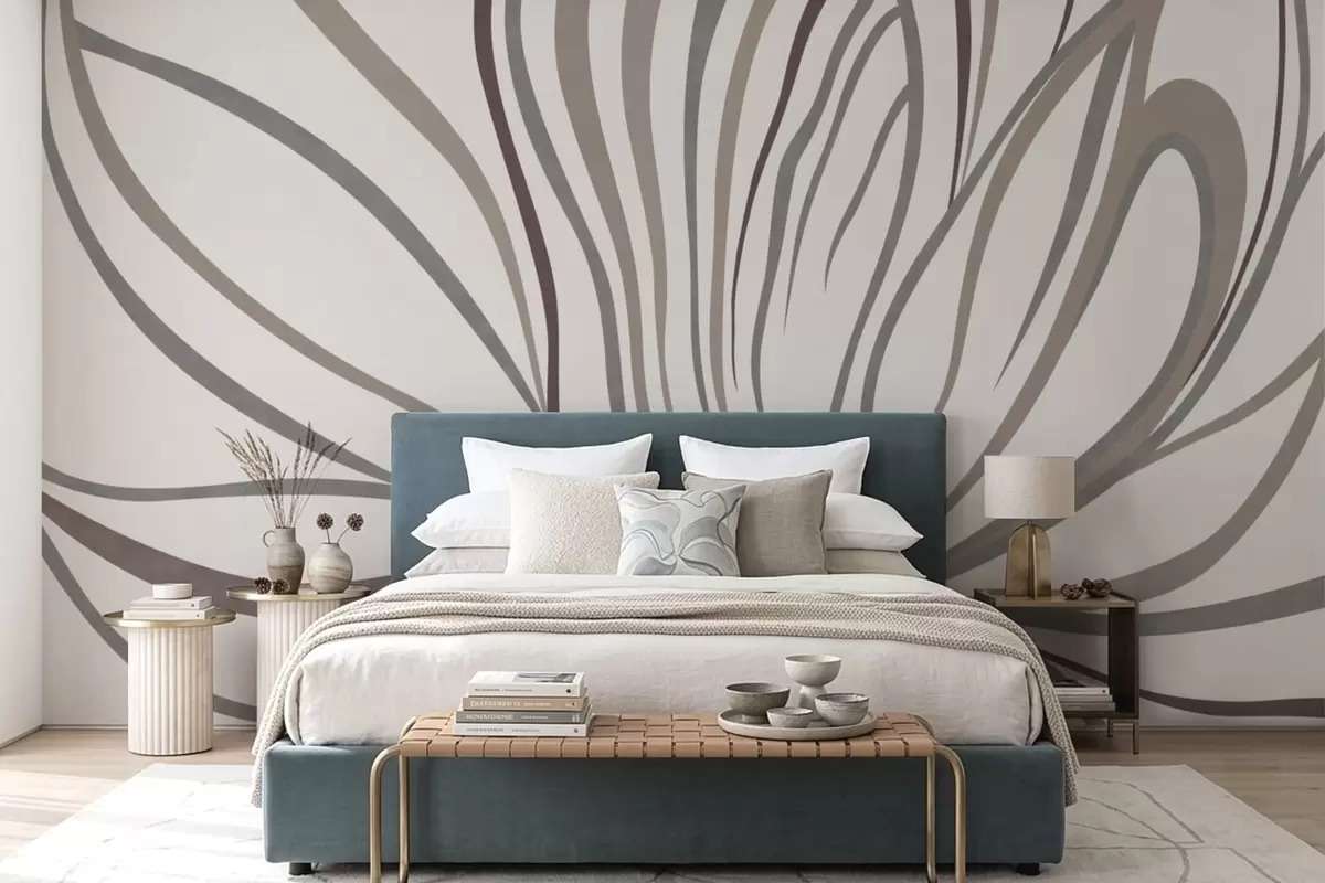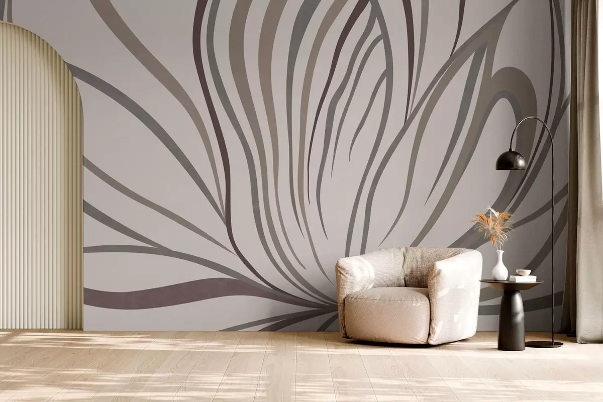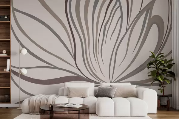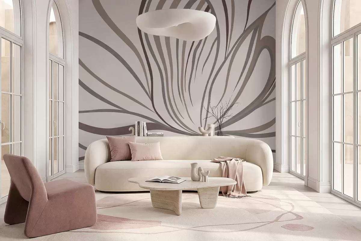 Murais de parede Flor abstrata com linhas em tons de cinza e rosa Nr. w05392