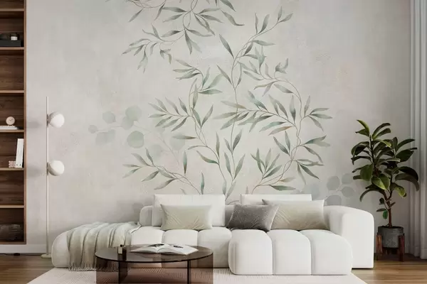 Murais de parede Padrão botânico delicado com galhos finos sobre fundo claro Nr. w05424