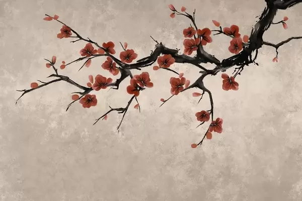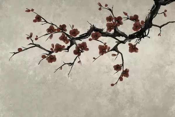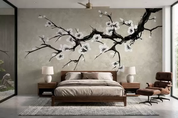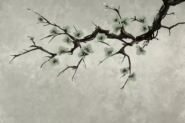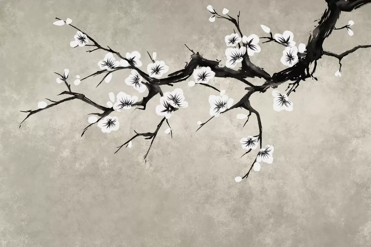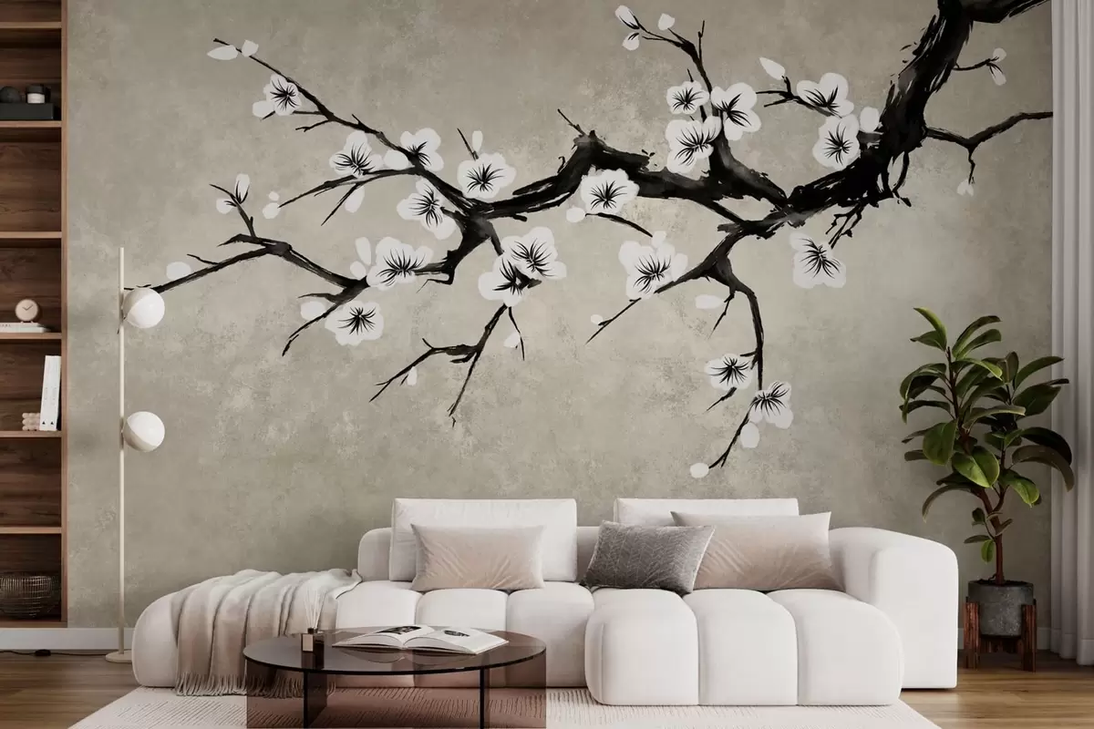 Murais de parede Galho com flores brancas em estilo minimalista Nr. w05425
