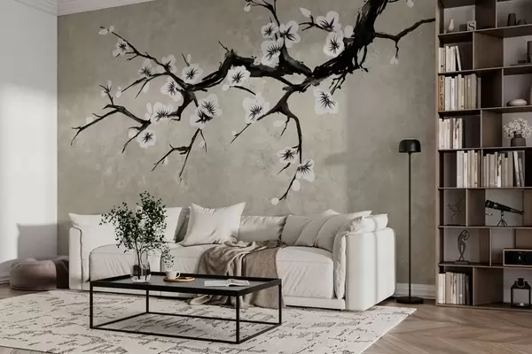 Murais de parede Galho com flores brancas em estilo minimalista Nr. w05425