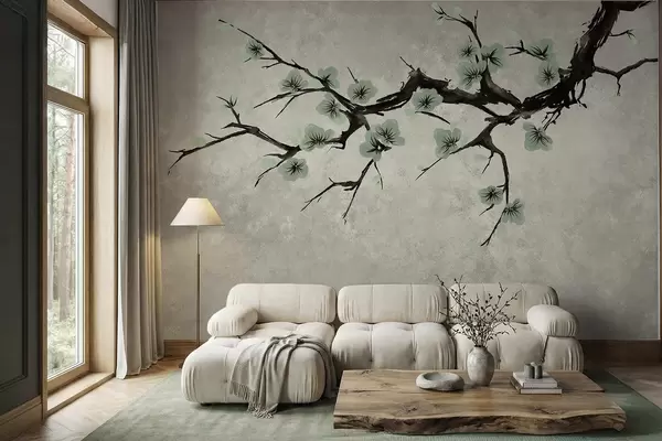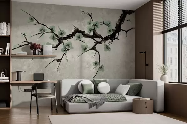 Murais de parede Galho com flores verdes em tons suaves Nr. w05425v2