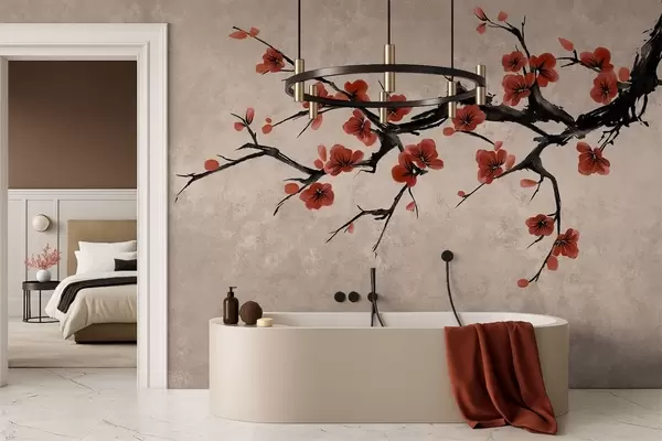Murais de parede Ramo florido em estilo oriental sobre fundo bege Nr. w05425v4