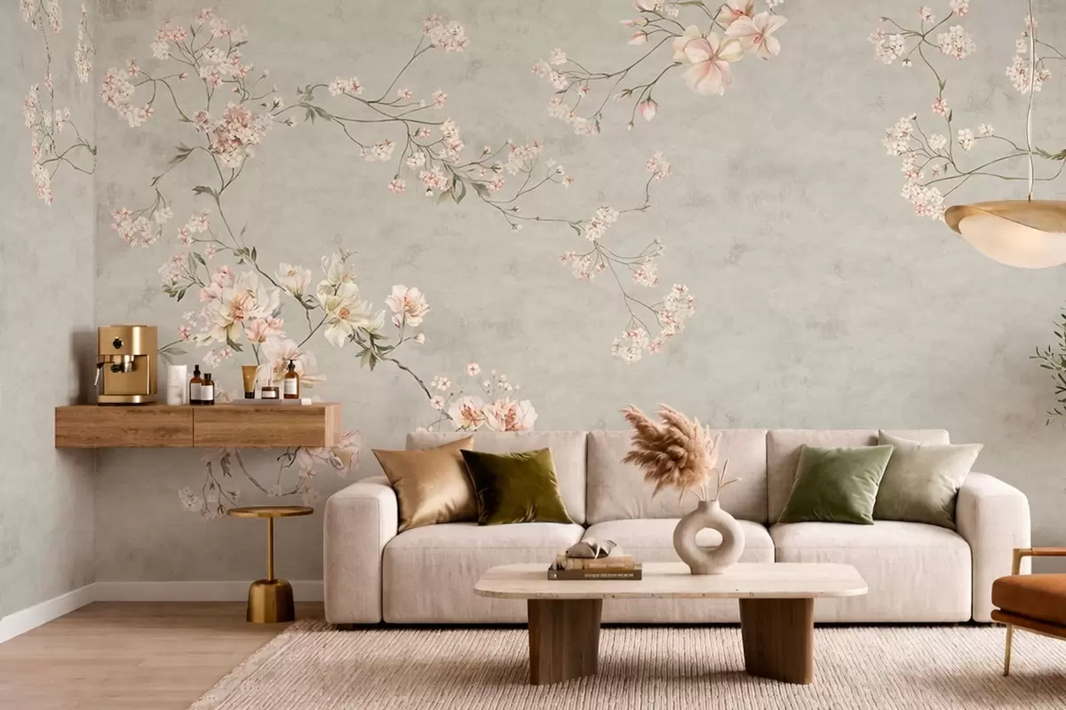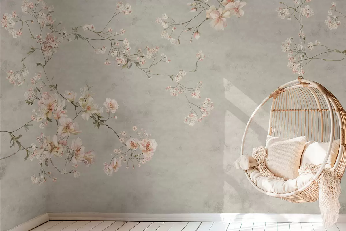 Murais de parede Ramos florais em estilo chinoiserie sobre fundo cinza Nr. w05427v1