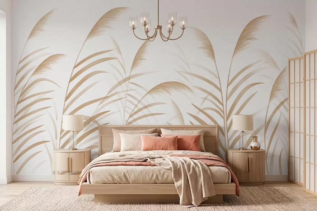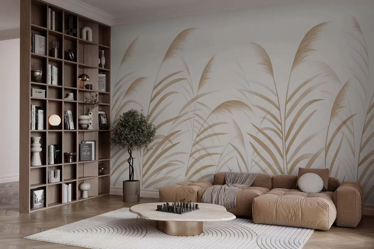 Murais de parede Gramíneas minimalistas em tons de bege claro Nr. w05432v1