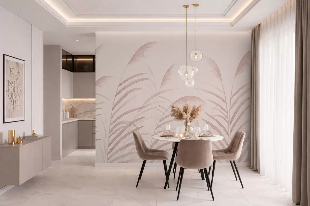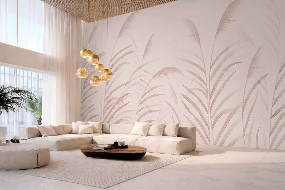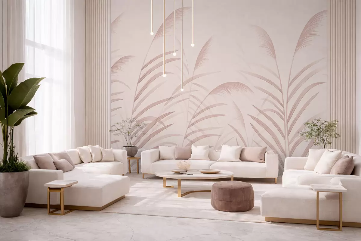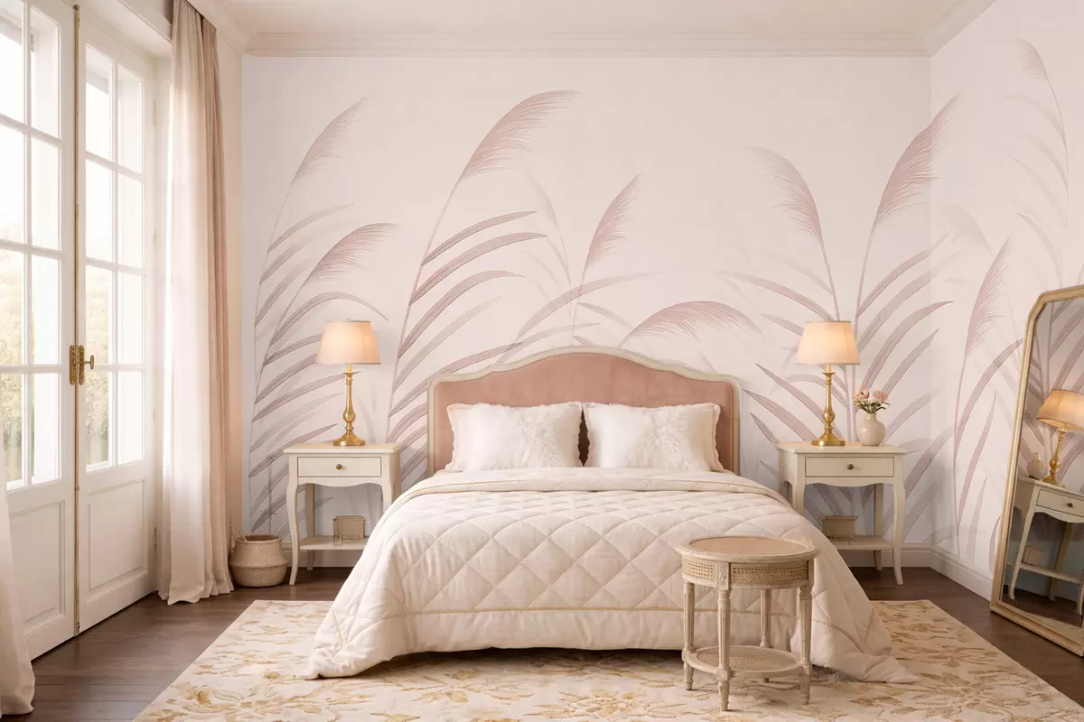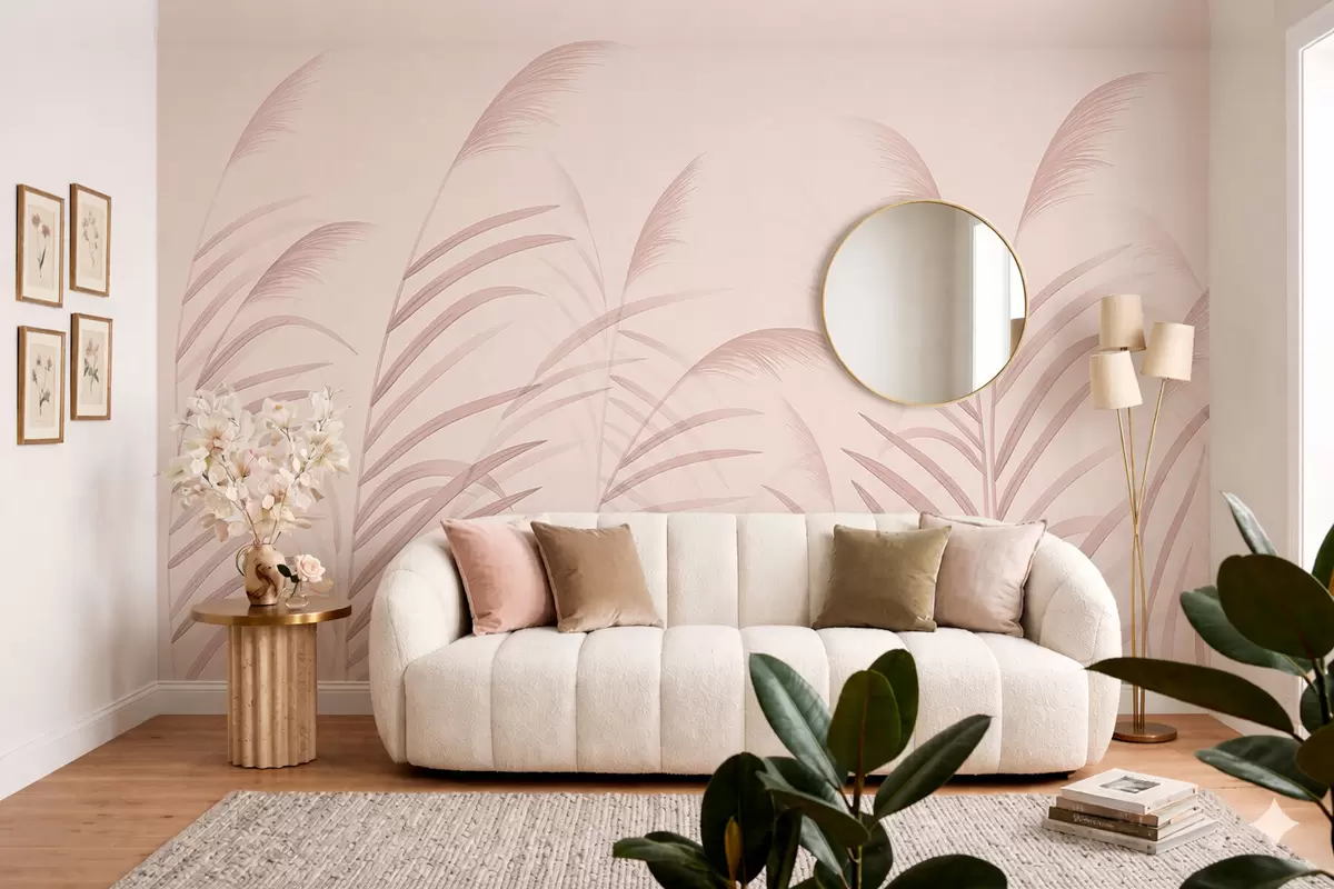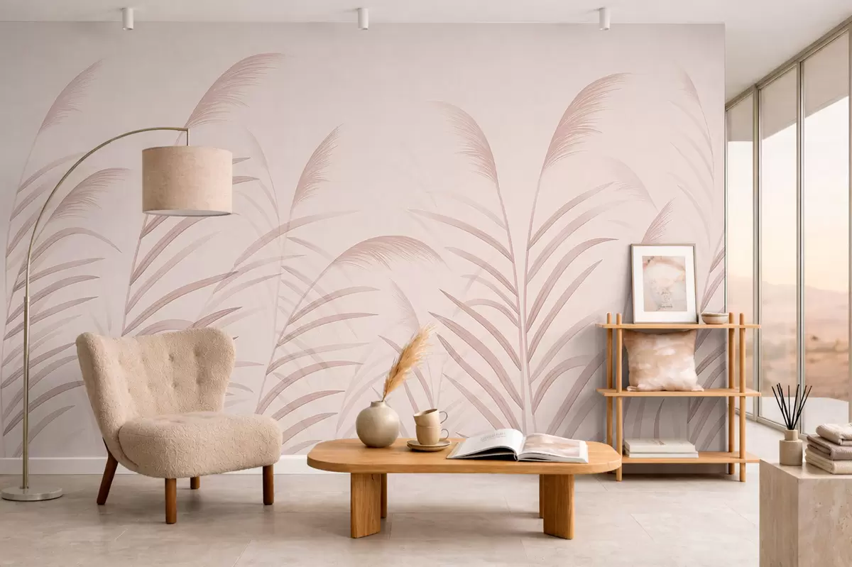 Murais de parede Gramíneas minimalistas em tons suaves de rosa Nr. w05432v2