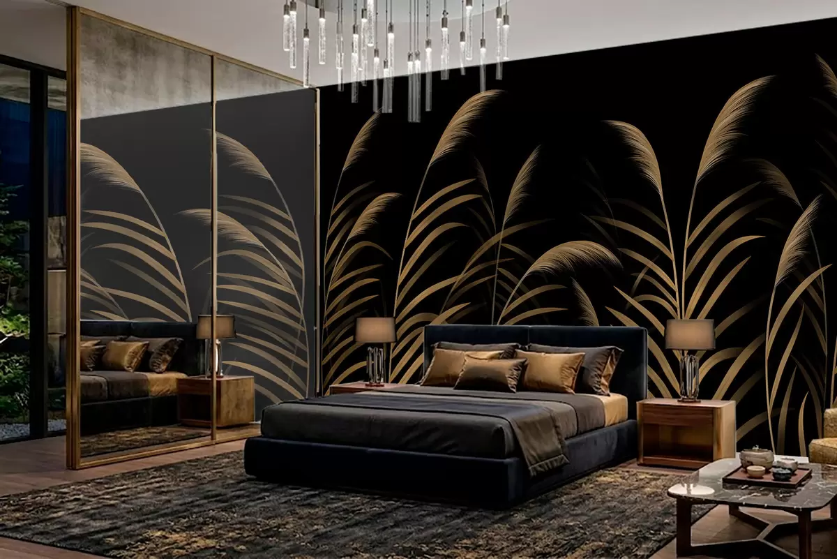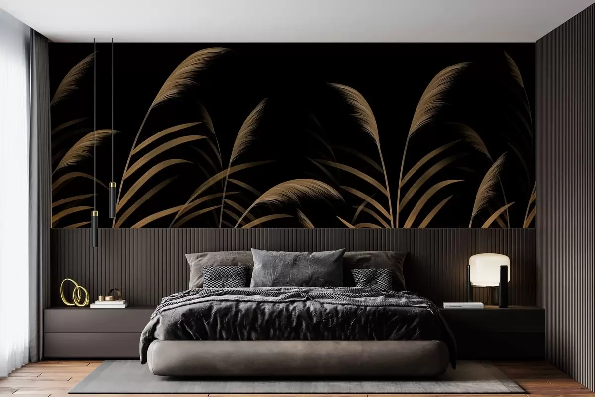 Murais de parede Gramíneas minimalistas em fundo escuro com alto contraste Nr. w05432v3