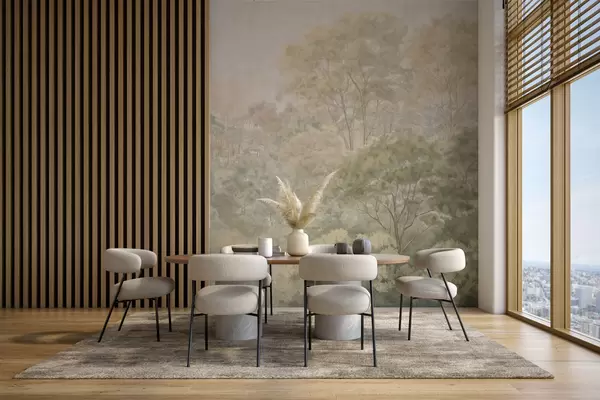 Murais de parede Paisagem florestal vintage em tons suaves de verde Nr. w05433