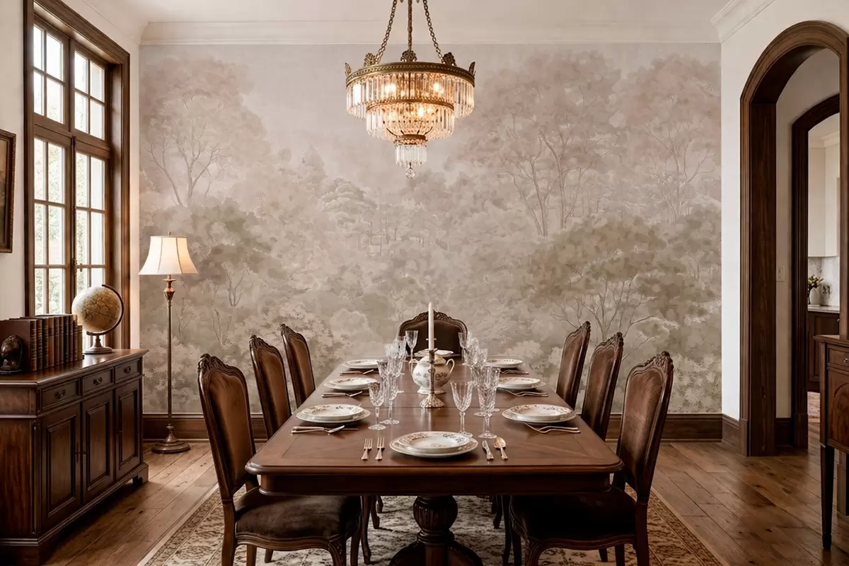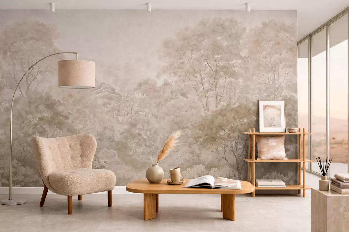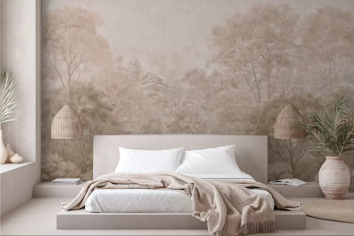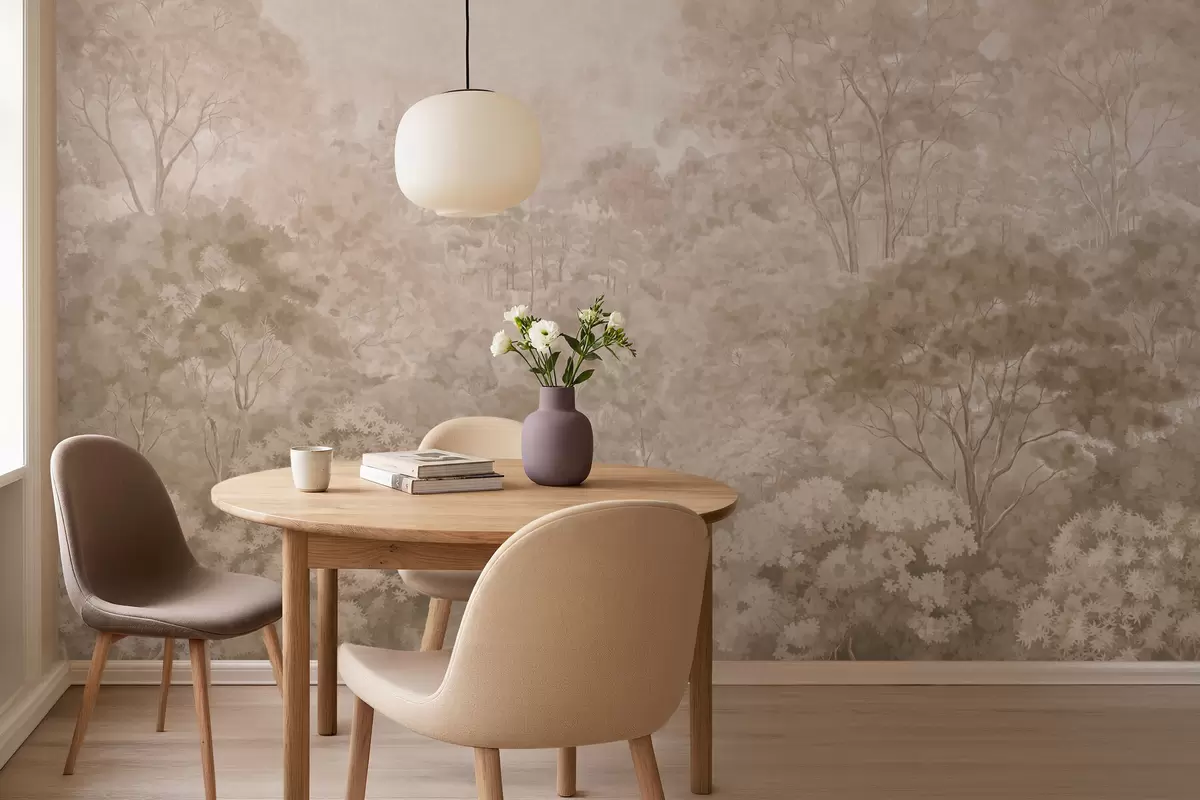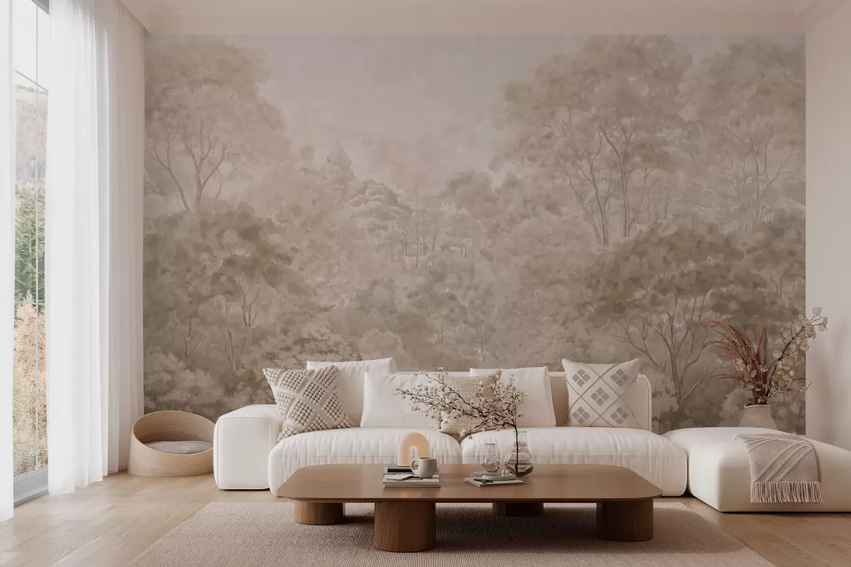 Murais de parede Paisagem florestal vintage em tons quentes de bege Nr. w05433v1