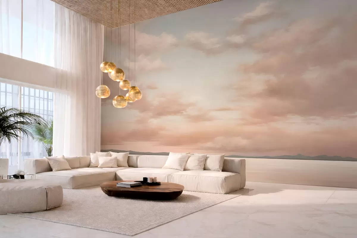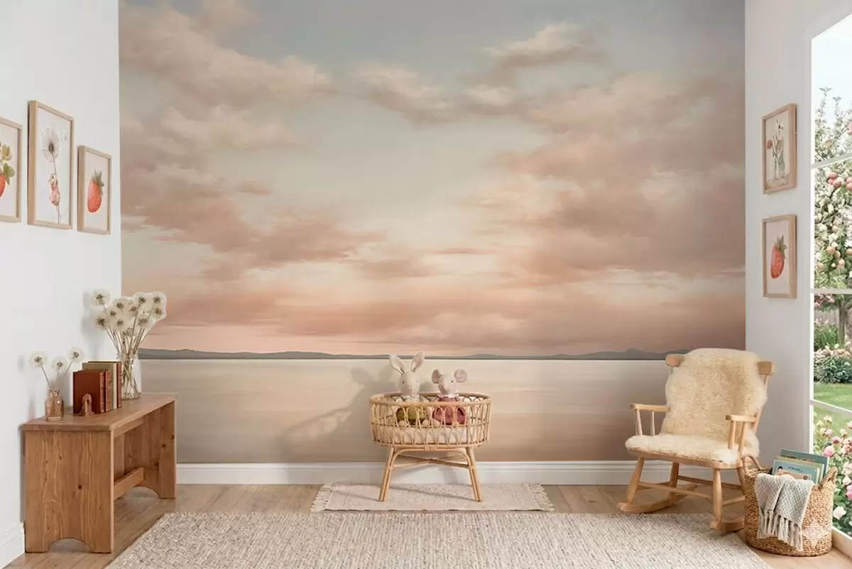 Murais de parede Horizonte marinho minimalista com nuvens em tons pastéis Nr. w05516