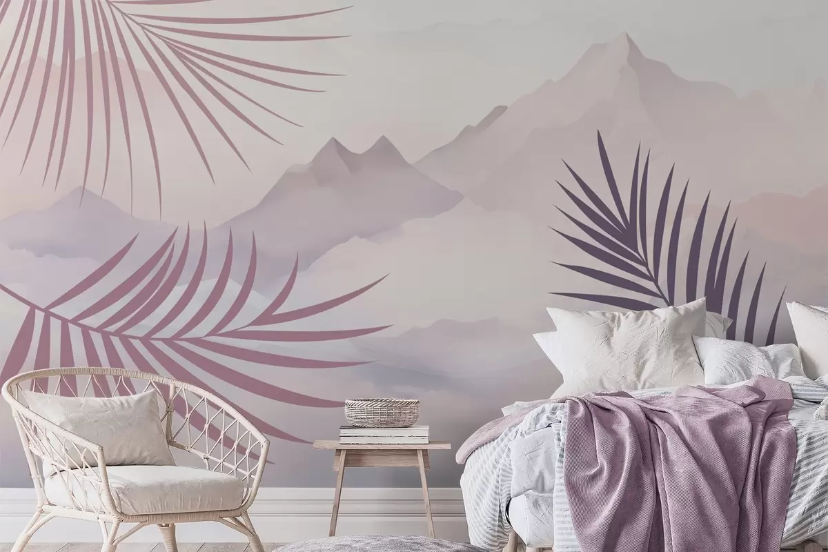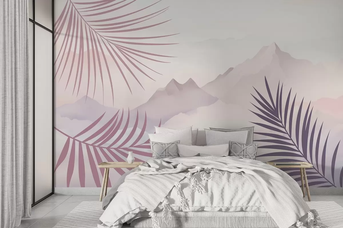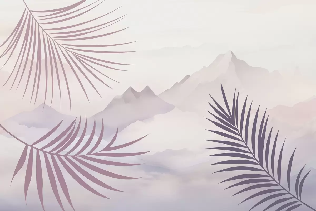 Murais de parede Folhas de palmeira tendo as montanhas como pano de fundo Nr. w05548v1