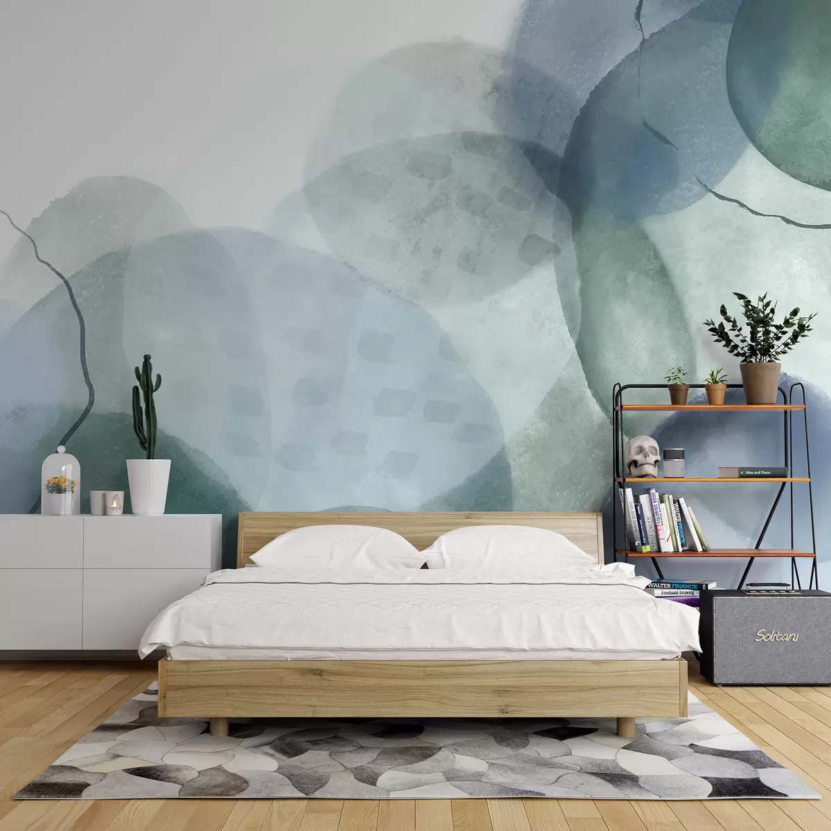 Murais de parede Formas suaves e abstratas em aquarela em tons de azul, verde e branco Nr. w07926