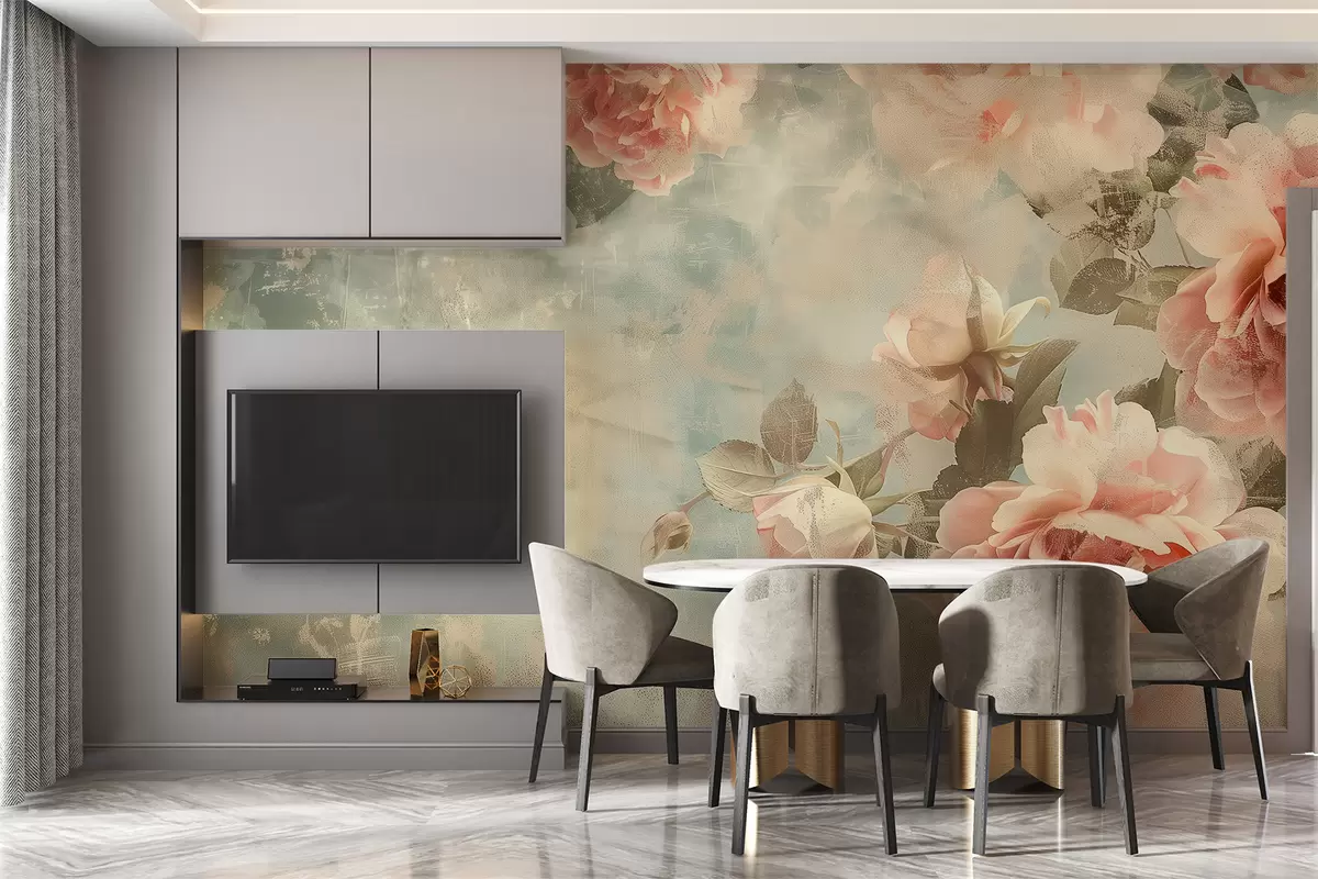 murais de parede Fundo esfumaçado com flores delicadas w07941