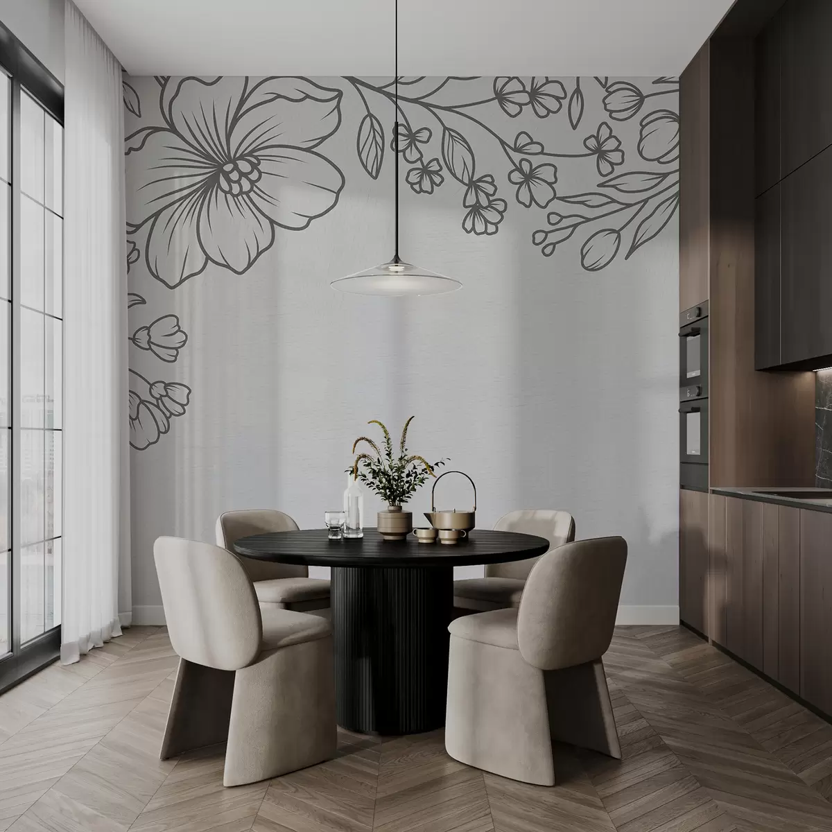 Murais de parede grandes flores pintadas em um fundo cinza Nr. w07952