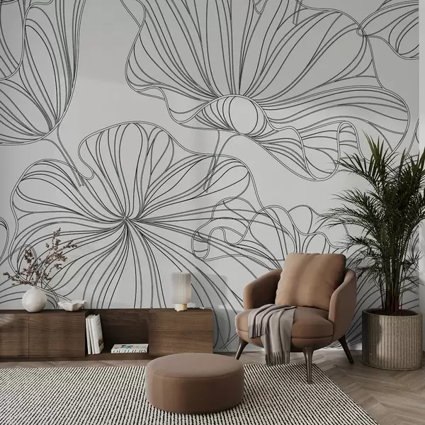 Murais de parede Grandes flores lineares, fundo bege claro Nr. w07997v1