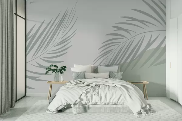 Murais de parede Folhas tropicais em um fundo claro Nr. w08016