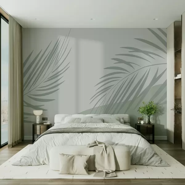 Murais de parede Folhas tropicais em um fundo claro Nr. w08016