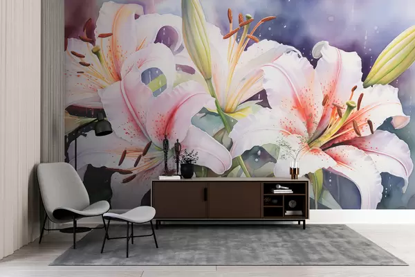 Murais de parede Lírios brancos em uma aquarela de fundo escuro Nr. w08022