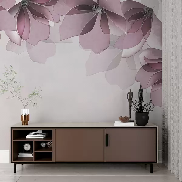 Murais de parede grandes flores rosa translúcidas Nr. w08041