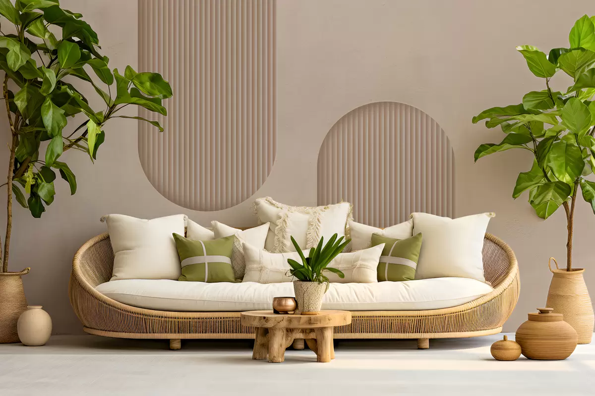 Murais de parede Papel de parede texturizado Art Déco em tons quentes de bege. Imitação de arcos volumétricos Nr. w08048
