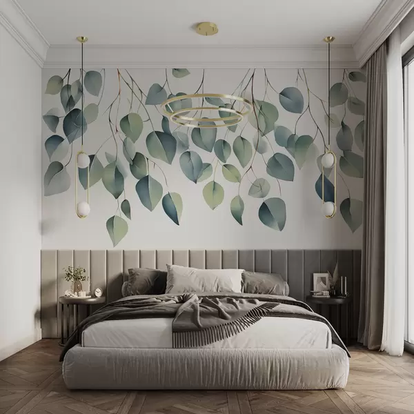 Murais de parede Ramos com folhas de eucalipto em aquarela Nr. w08130