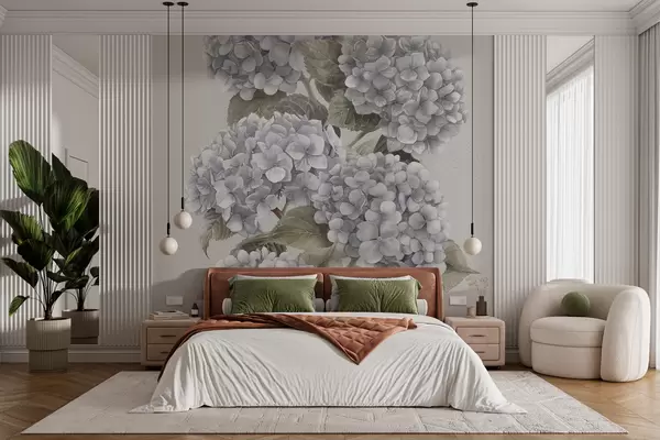 Murais de parede Ramos de hortênsia em tons pastéis suaves Nr. w08176