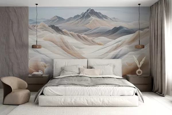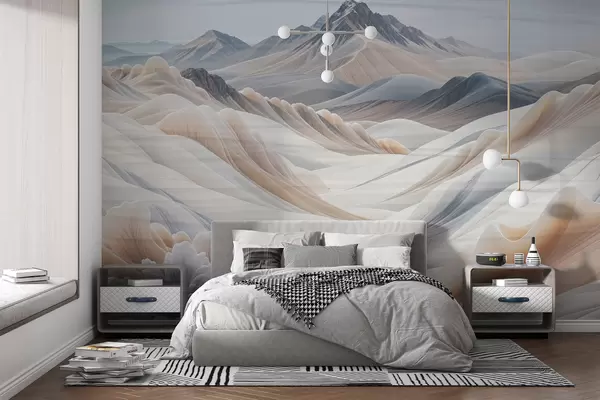 Murais de parede Estampa de paisagem montanhosa com picos nevados em tons de bege estética minimalista Nr. w08191