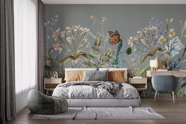Murais de parede Ur skeudenn glas livus eus ul liorzh bleunioù luziet gant amprevaned en un doare hunvreel ha fentus Nr. w08234