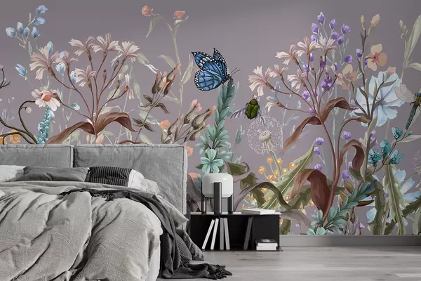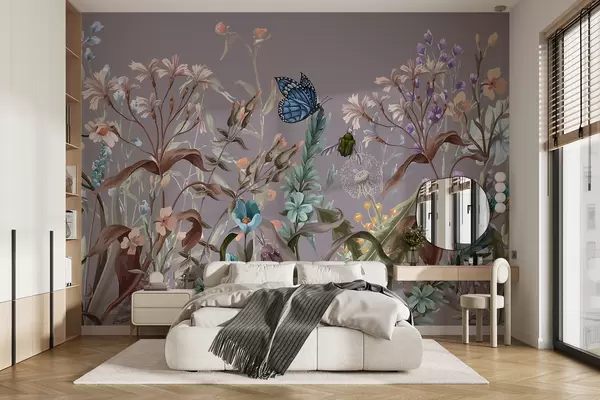 Murais de parede Ur skeudenn violet livus eus ul liorzh bleunioù luziet gant amprevaned en un doare hunvreel ha fentus Nr. w08234v1