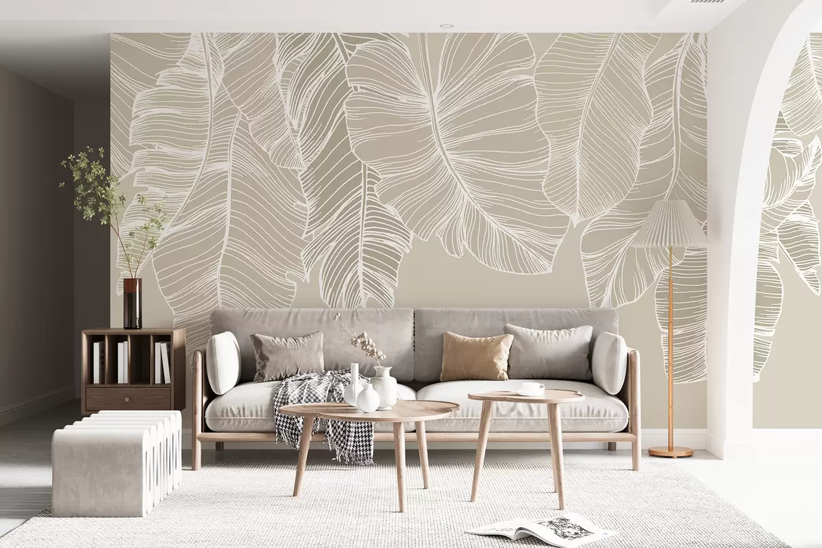 Murais de parede Delioù bleunioù trovanel gwenn gant un drekleur beige sklaer, tresadenn arz dre linenn minimalist Nr. w08235