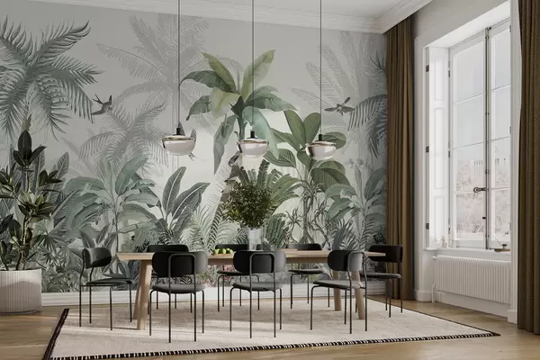 murais de parede Ur c'hoad trovanel frouezhus gant palmezoù liesseurt, delioù bras ha bleunioù liesseurt en a-raok w08239