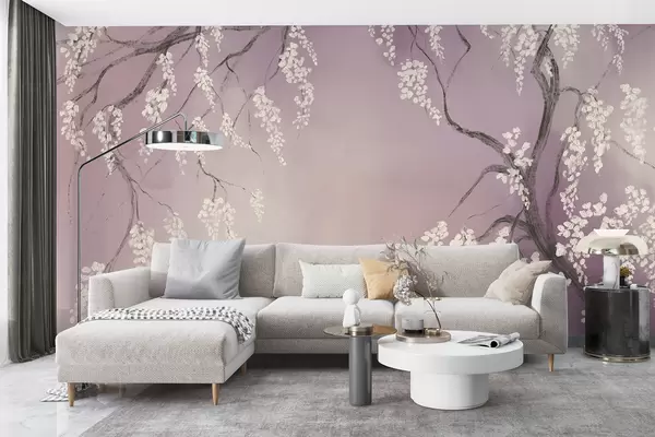 Murais de parede Gwezenn-kerez wenn delioù gant bleunioù bleunioù o vleuniañ war ar brankoù war un dremmwel roz Nr. w08243v2