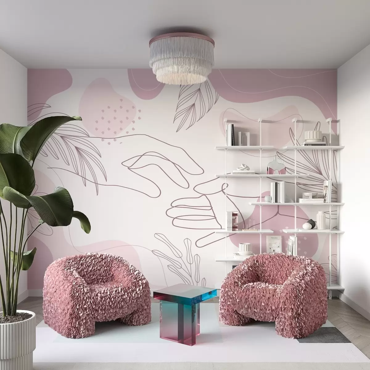 Murais de parede Vetor, mãos lineares, manchas, cor rosa Nr. w08353v1