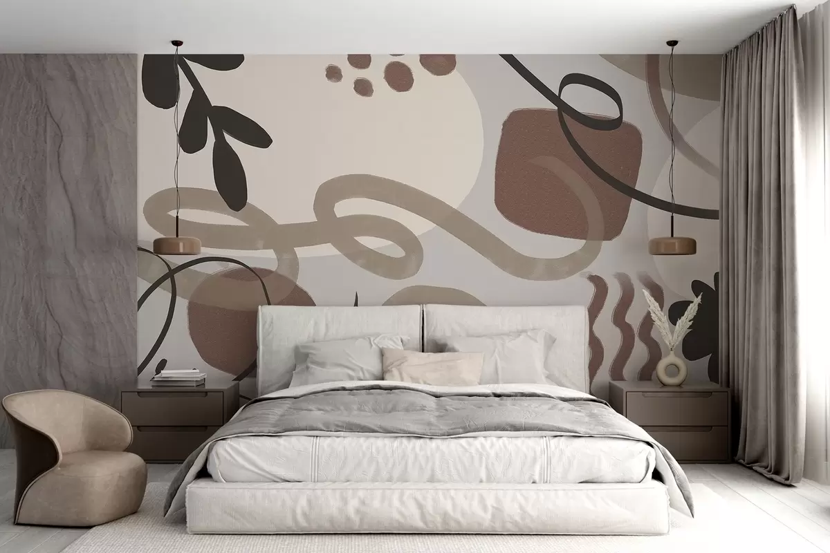 Murais de parede Estampa moderna minimalista com textura abstrata e formas em tons terrosos de marrom, bege e preto Nr. w08384