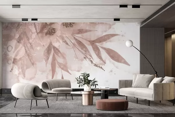 Murais de parede Delicado respingo de rosa com elementos florais abstratos e fundo suave e desfocado Nr. w08417