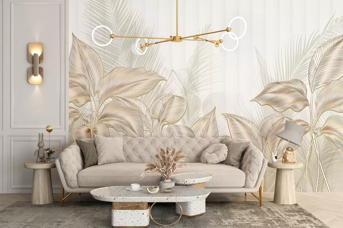 Murais de parede Elegantes folhas de palmeira brancas e bege em um fundo claro e texturizado Nr. w08434