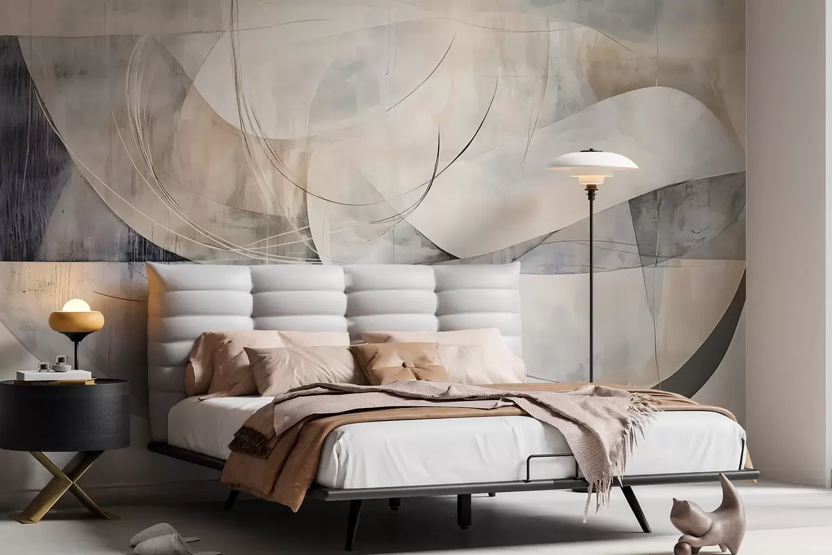 Murais de parede Formas abstratas e formas em tons de branco, cinza, bege e azul contra um fundo texturizado desfocado Nr. w08461
