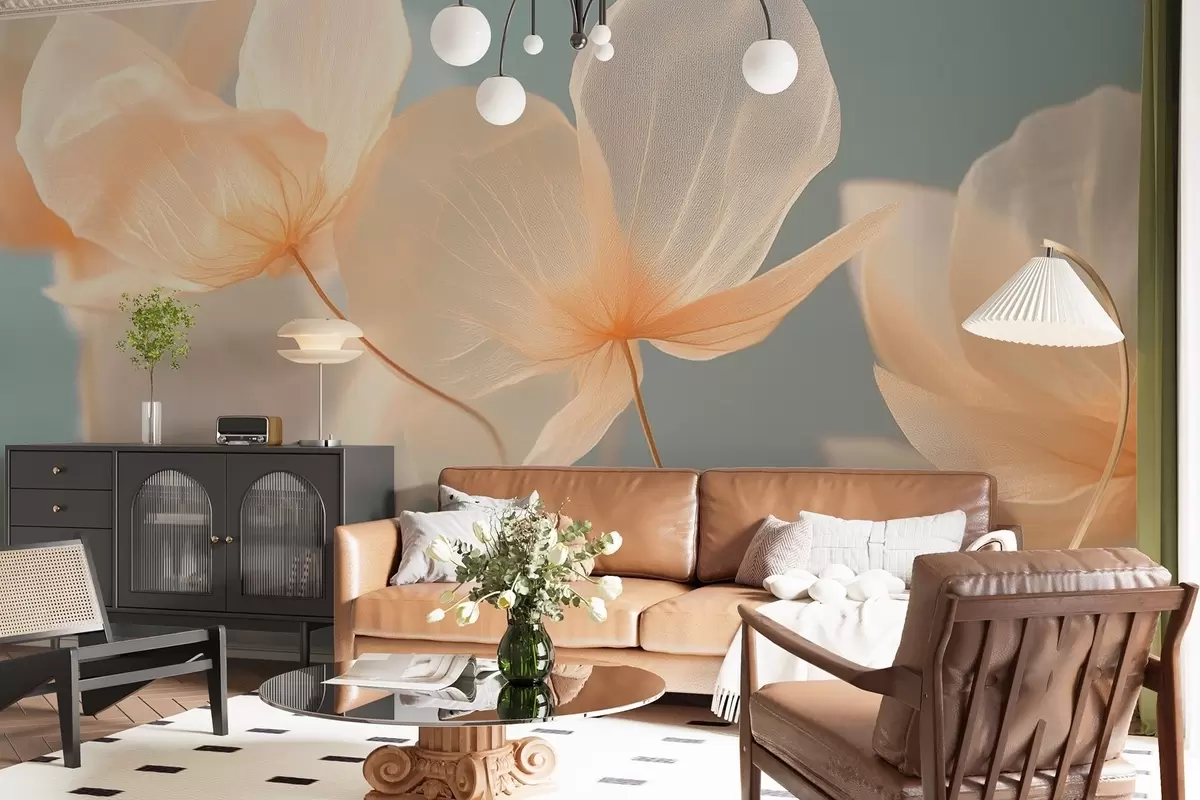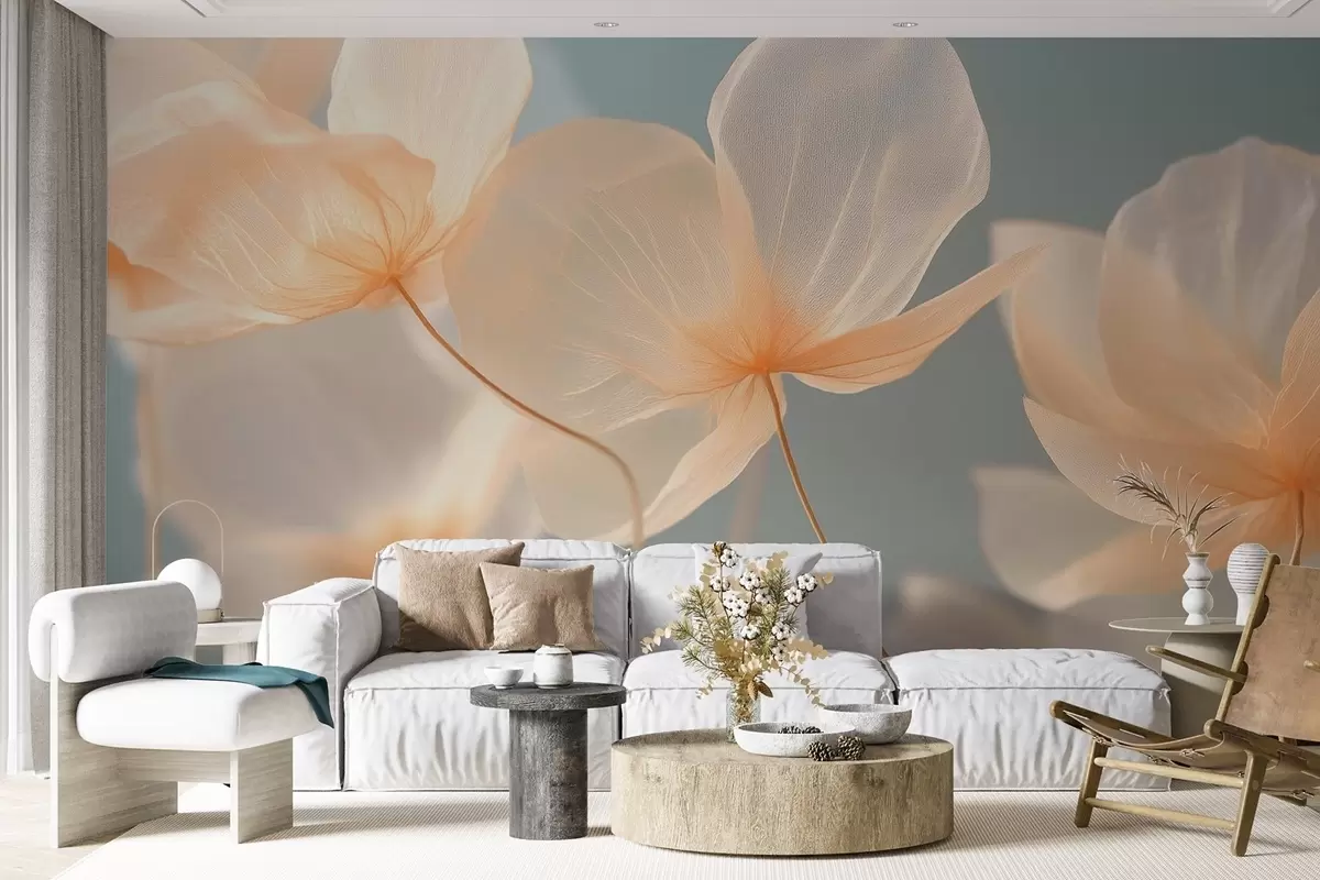 Murais de parede Pétalas de lótus, uma composição delicada com um fundo azul Nr. w08500