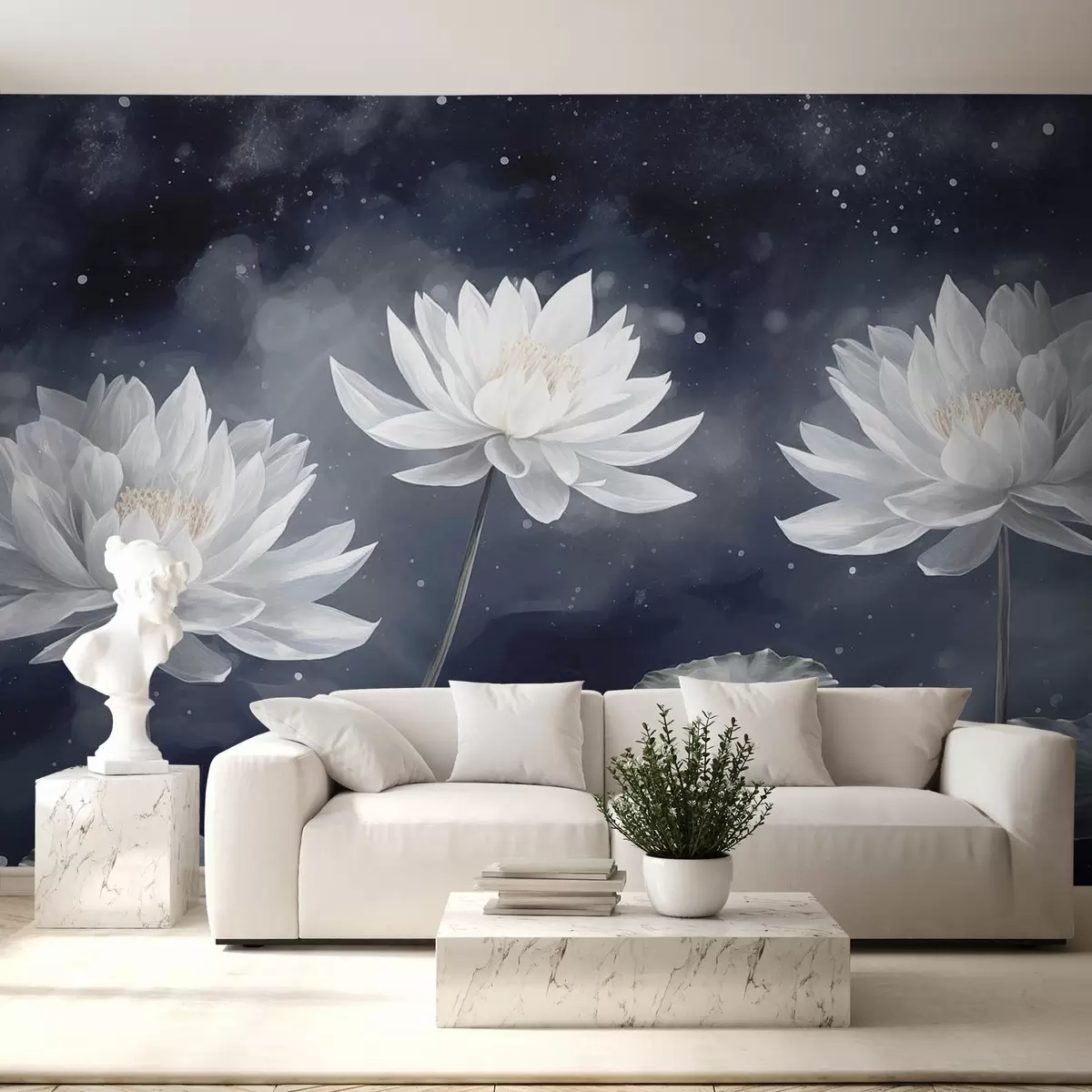 Murais de parede Três flores de lótus em um fundo escuro Nr. w08506