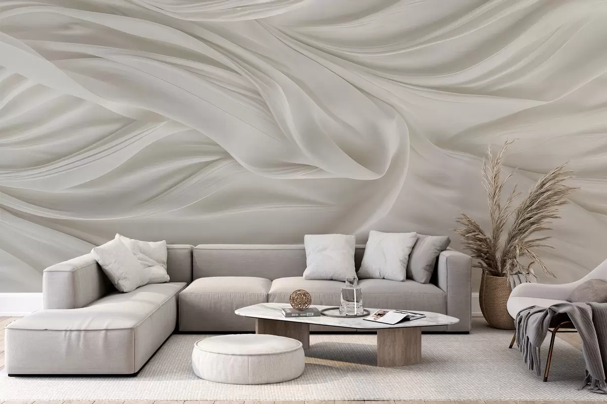 Murais de parede Estampa moderna com imitação de tecido branco liso e fluido com dobras e vincos suaves e ondulantes Nr. w08537
