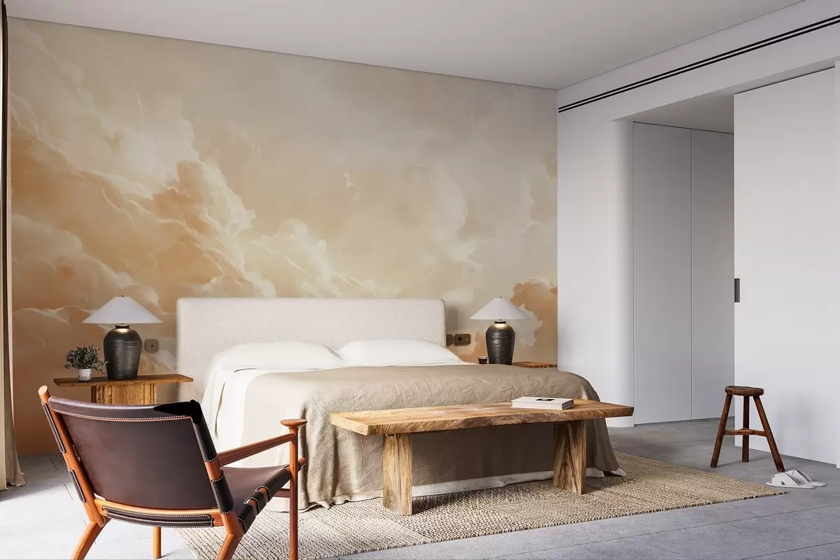 Murais de parede Céu bege com nuvens em um estilo pitoresco Nr. w08550